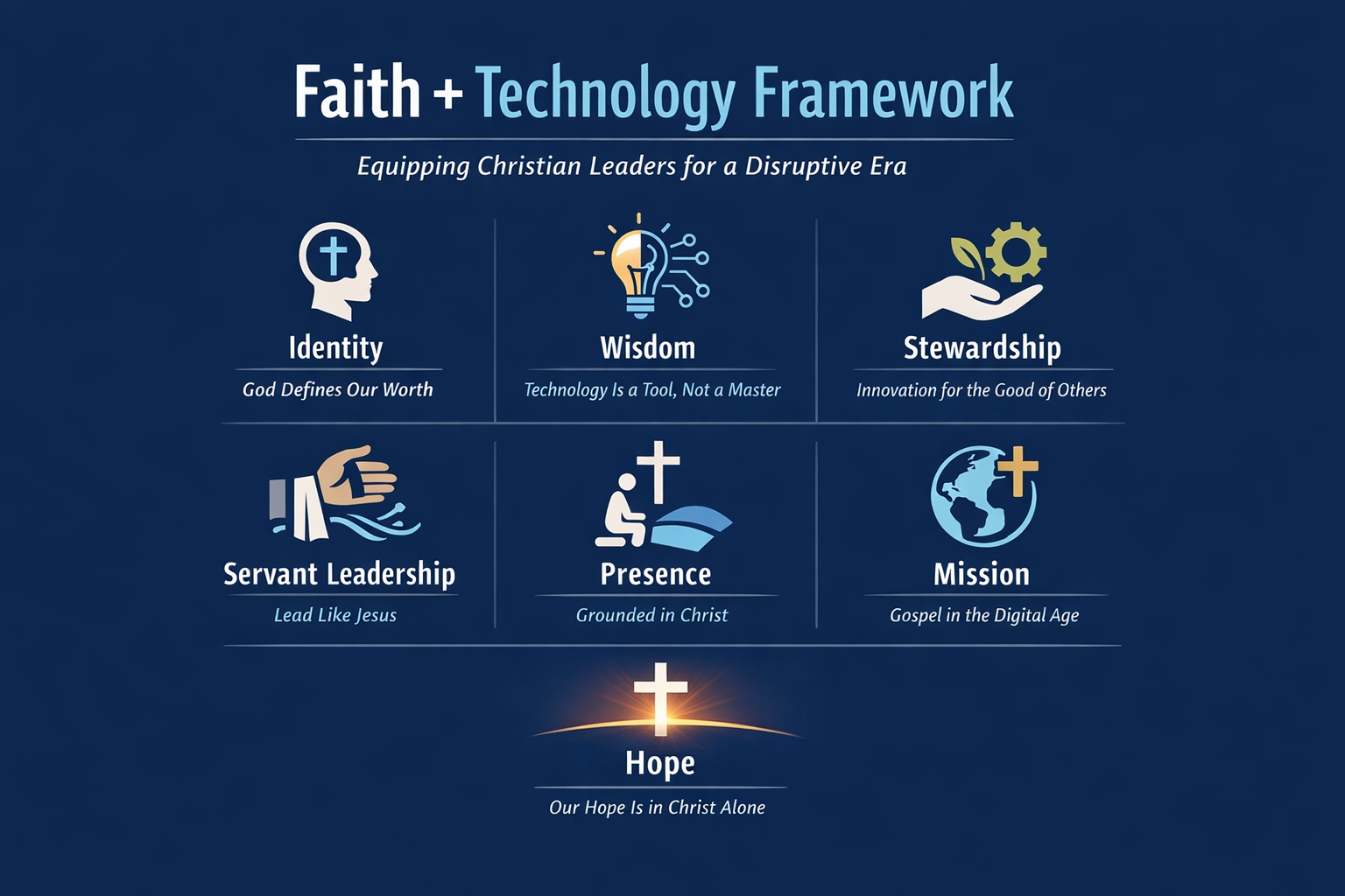 The Faith + Technology Framework equips Christian leaders to navigate this moment with wisdom, humility, and courage rooted in Christ.